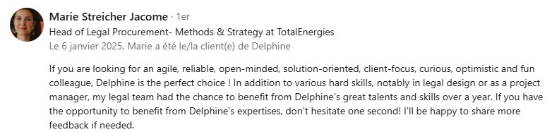 - Renforcement de votre crédibilité grâce à la publication d’un contenu approuvé par une experte en Legal Operations